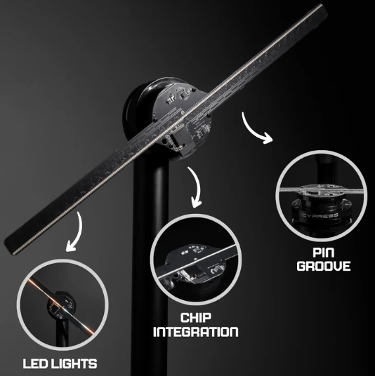 As the LEDs move in flawless synchronization, your visuals transform into a stunning 3D holographic display — floating effortlessly in mid-air, no screen needed. ✨